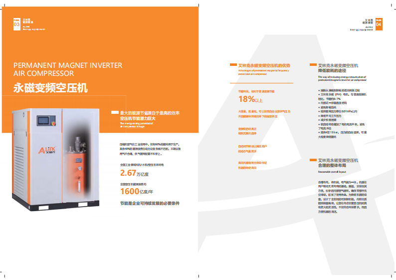 廣東艾林克能源裝備有限公司是自主研發(fā)、設(shè)計(jì)、生產(chǎn)及銷售的空氣壓縮機(jī)制造型企業(yè),致力于為市場(chǎng)提供壓縮空氣節(jié)能的全方位一站式服務(wù)。