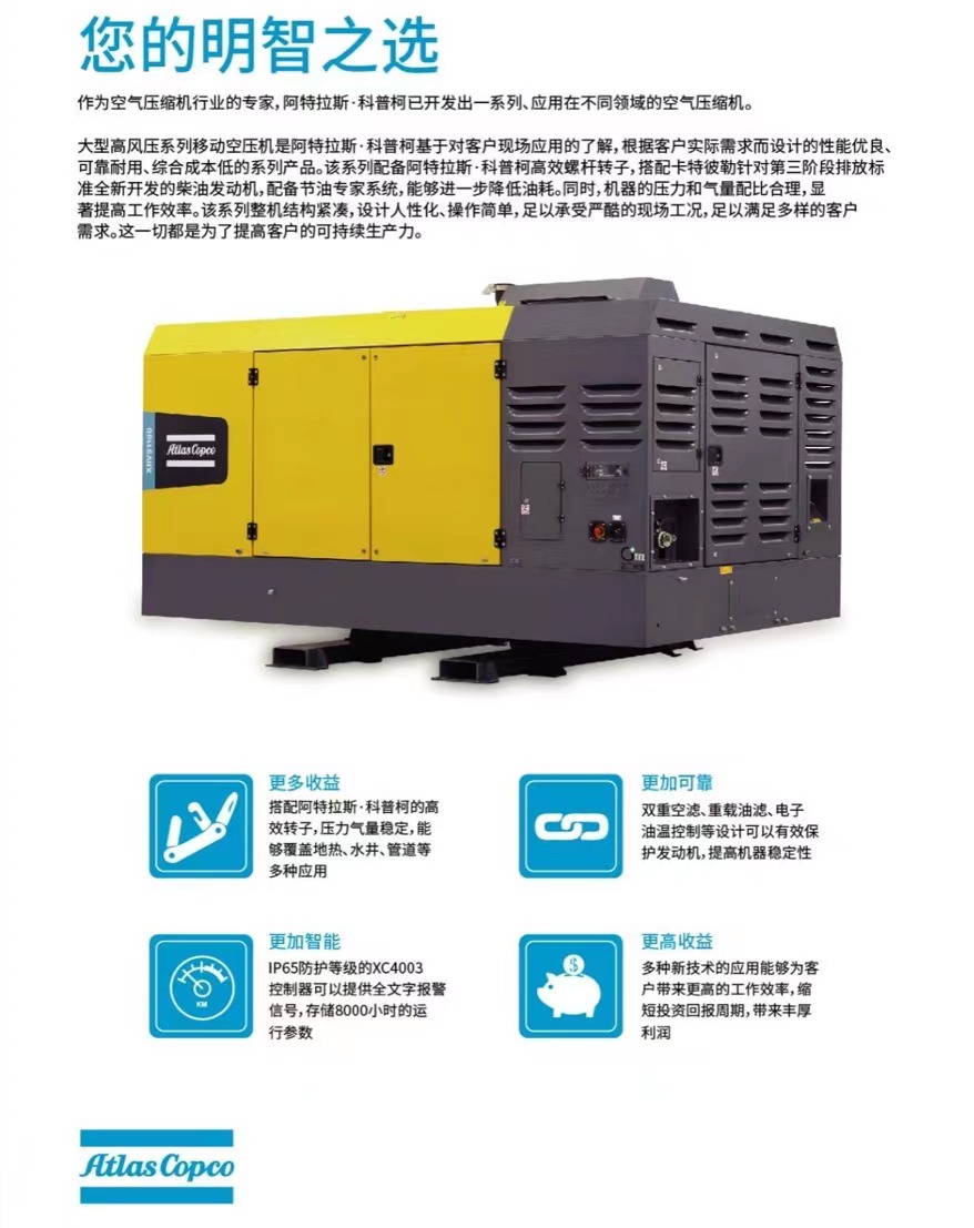 Atlas Copco(阿特拉斯·科普柯)成立于1873年,是一個(gè)擁有140多年歷史的國(guó)際品牌。動(dòng)力技術(shù)業(yè)務(wù)領(lǐng)域通過(guò)移動(dòng)空壓機(jī)、排水泵、發(fā)電機(jī)組、照明燈車(chē)、液壓工具及其零備件和售后服務(wù),為多個(gè)行業(yè)提供可持續(xù)生產(chǎn)力。